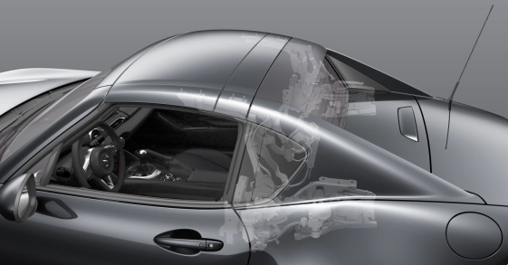 The Mazda MX-5 Miata RF features a hardtop design that can retract in about 13 seconds for a look inspired by classic 1960s roadsters.